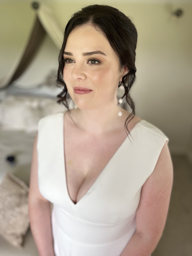 "I just wanted to say an absolutely HUGE thank you for doing wedding hair & make up for me. Throughout our trials & on the day itself, you were such a lovely presence - so calm & reassuring, helping us to stay relaxed, whilst also being so professional & just brilliant at your job. I absolutely loved my hair & make up on the day - I felt so beautiful & I was so happy with how everything turned out. My hair was exactly as I envisioned it, & my make up was just how I wanted it to be - thank you so much for taking my vision (& admittedly pretty vague ideas!) & producing something so perfect. To top it all off, my hair stayed secure all day, my make up was perfect right through to midnight. I cannot thank you enough for everything you did - hair & make up was something I was slightly more nervous about, as it's not my area at all, but you showed I had nothing to worry about. I'm so glad I was able to book you for my day - I couldn't have had anyone better.”